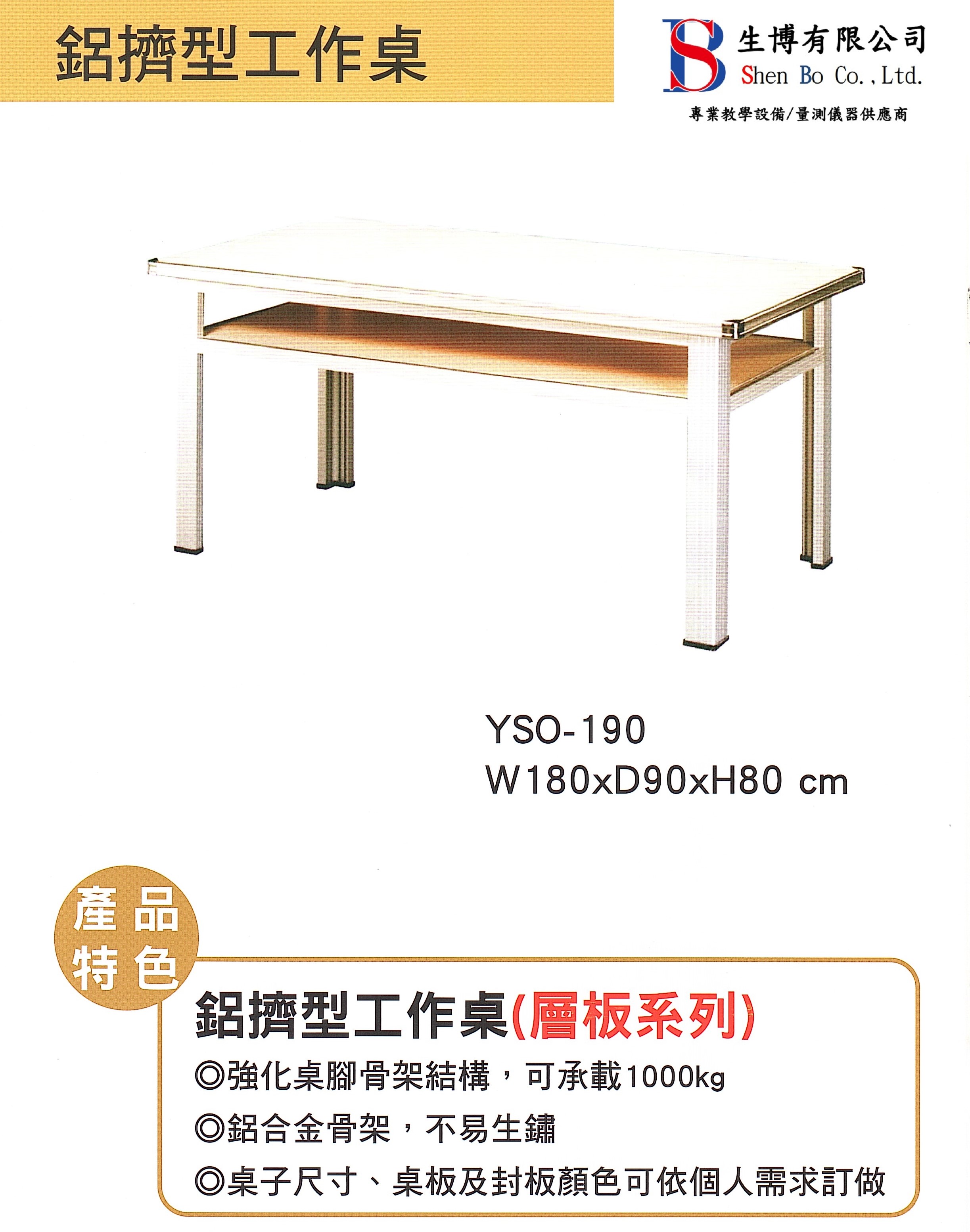 - 鋁擠型桌腳80mm×80mm之L型鋁擠型鋁合金製,不是一般口型或L型鋁料,因一般鋁料是厚度不過,承受重力不過,易產生工作桌變形或搖晃。