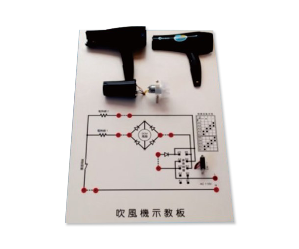 2.器具組件:2組電熱線(含溫度開關)、風扇馬達(含橋式整流電路)、選擇開關(含二極體)、出風隧道、外殼,各組件分別固定及引線至接線端子於板面