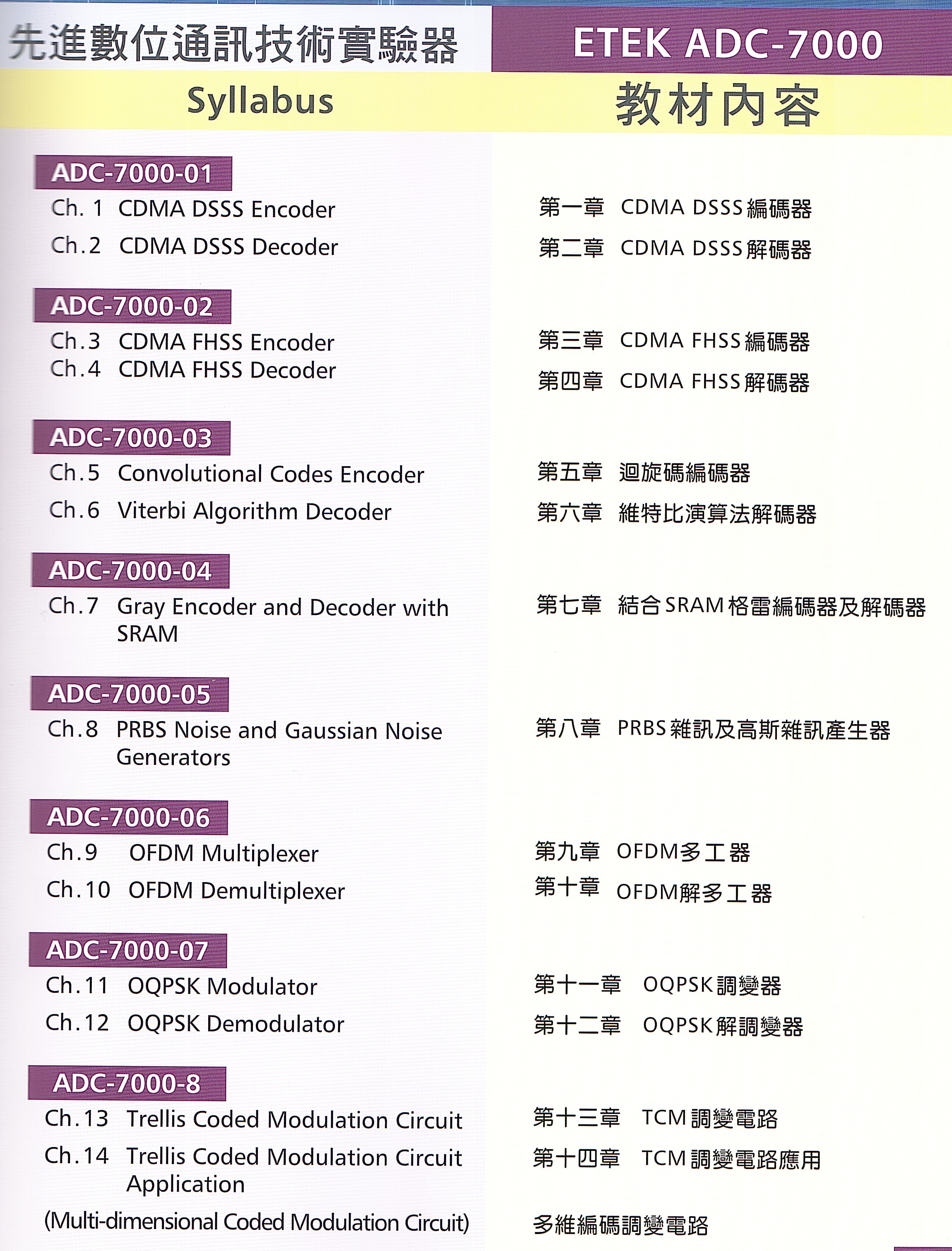 先進數位通訊技術實驗器ADC-7000