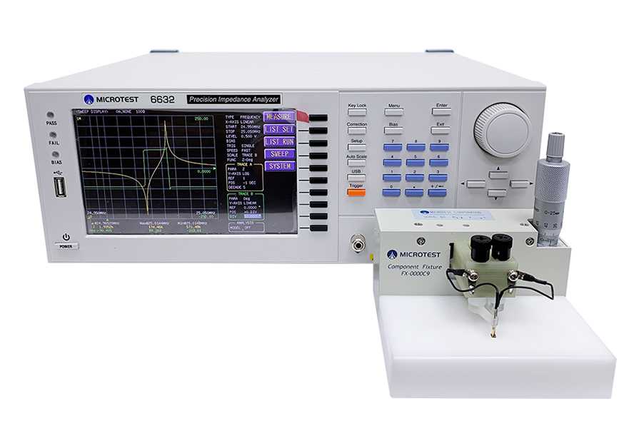 MICROTEST 6632阻抗分析儀提供10Hz-50MHz寬頻率範圍量測元件/材料阻抗特性,量測參數包含|Z|(阻抗)、|Y|(導納)、θ(相位角)、X(電抗)、R(串並聯電阻)、G(電導)、B(電納)、L(電感)、D(損耗因數)、Q(品質因數)、DCR(直流電阻) 、C(電容)、ESR(等效串聯電阻) 、ε (相對介電係數)、μr (相對導磁係數),支援Meter模式與掃圖分析模式,因此量測結果以數字或圖形方式顯示,支援LAN/USB Host/USB Device/GPIB/RS-232通訊接口,可搭載自動化設備或人機介面(PLC)。